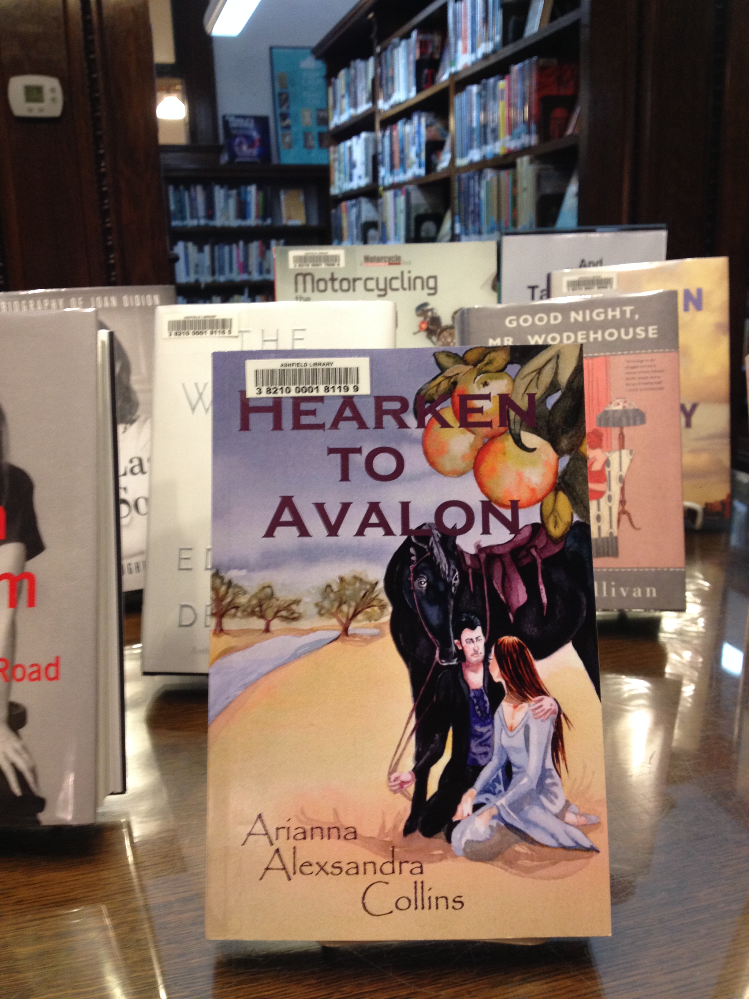 What is equally exciting is to see my novel, Hearken to Avalon, on display at my local library, Belding Memorial Library in Ashfield, MA. It just tickles my heart as I walk past the books on display that there is my “baby” front and center!
