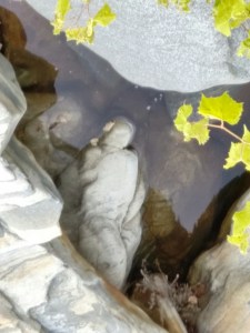 Our bodies buoy and it is not so easy to plant our bottoms in the swift moving river. We have to hold fast with feet and hands and do our best not to slip. And it’s cold. Refreshing. But never relaxing. And where did the Lady of the River go? I saw her. I swear it. But now, in the river I could not find her calm, serene face. I wanted to feel that serenity in myself.