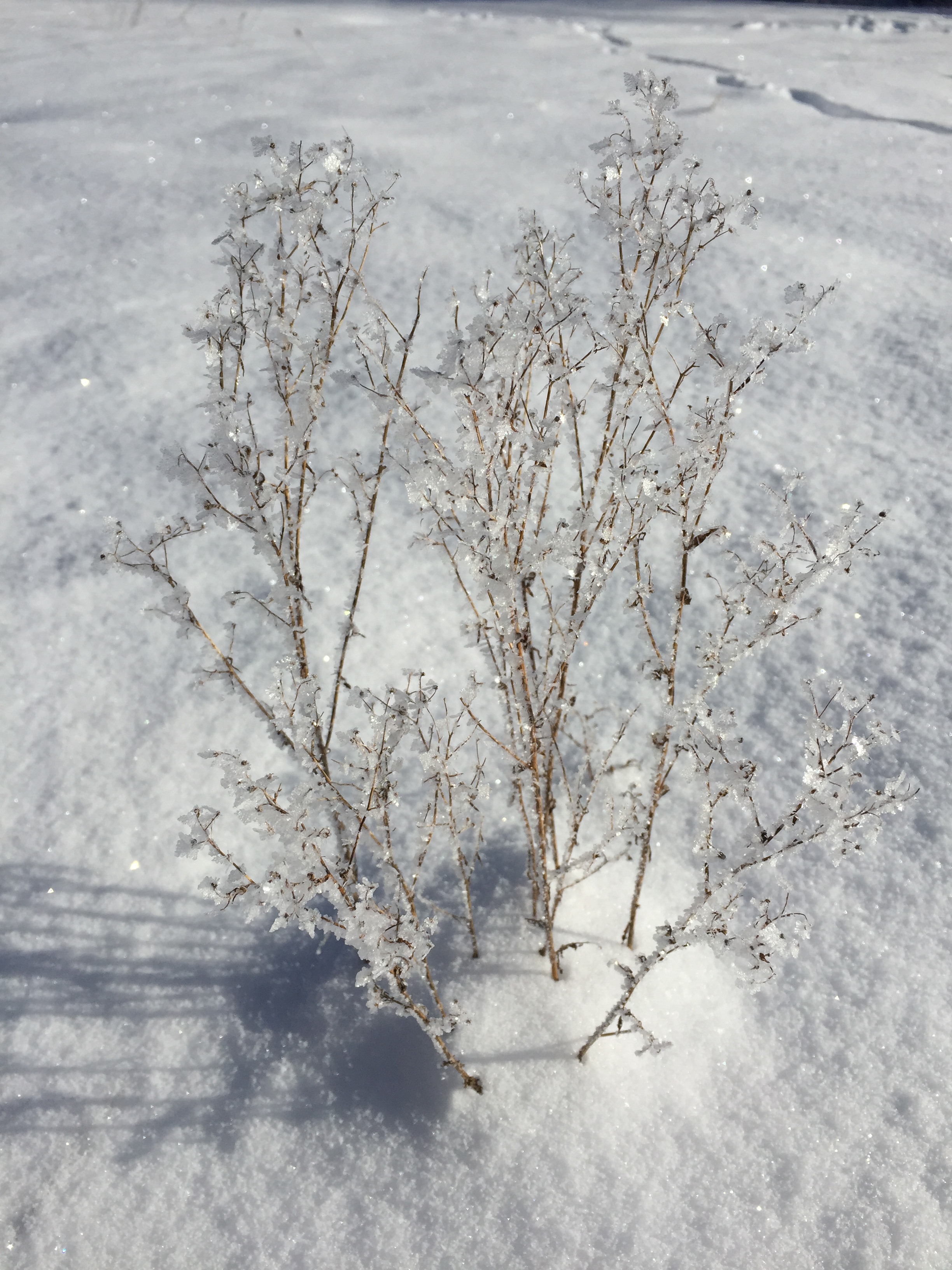 There was a crispness that you could walk right into – and I did. The cold air caught in my throat and I swallowed winter. The ice glistened in a sunny day that couldn’t quite touch the chill. As I walked my ears were met with the tales chickadees tell one another in the hush of the day. The quiet was broken by my steps crunching into the crusted-snow and a sudden trill call from a pine branch. I spied the source of the sound and my eyes ate the red squirrel scolding me. “Oh, am I disturbing your breakfast?” Did that squirrel nod before going back to the important business of scurrying up and down the tree? I thought so. I observed the squirrel for a few more moments as she searched for food at the base of tree.