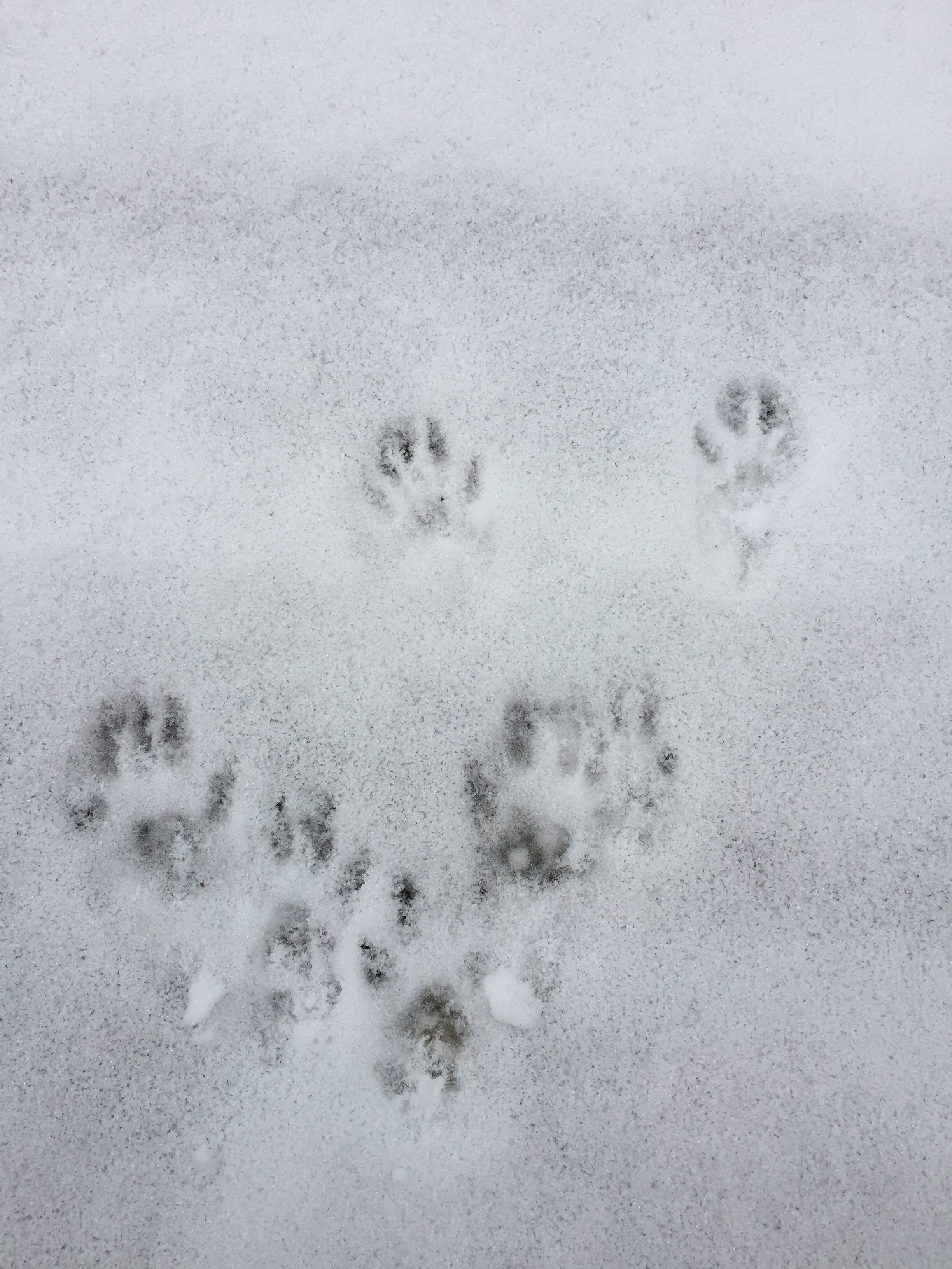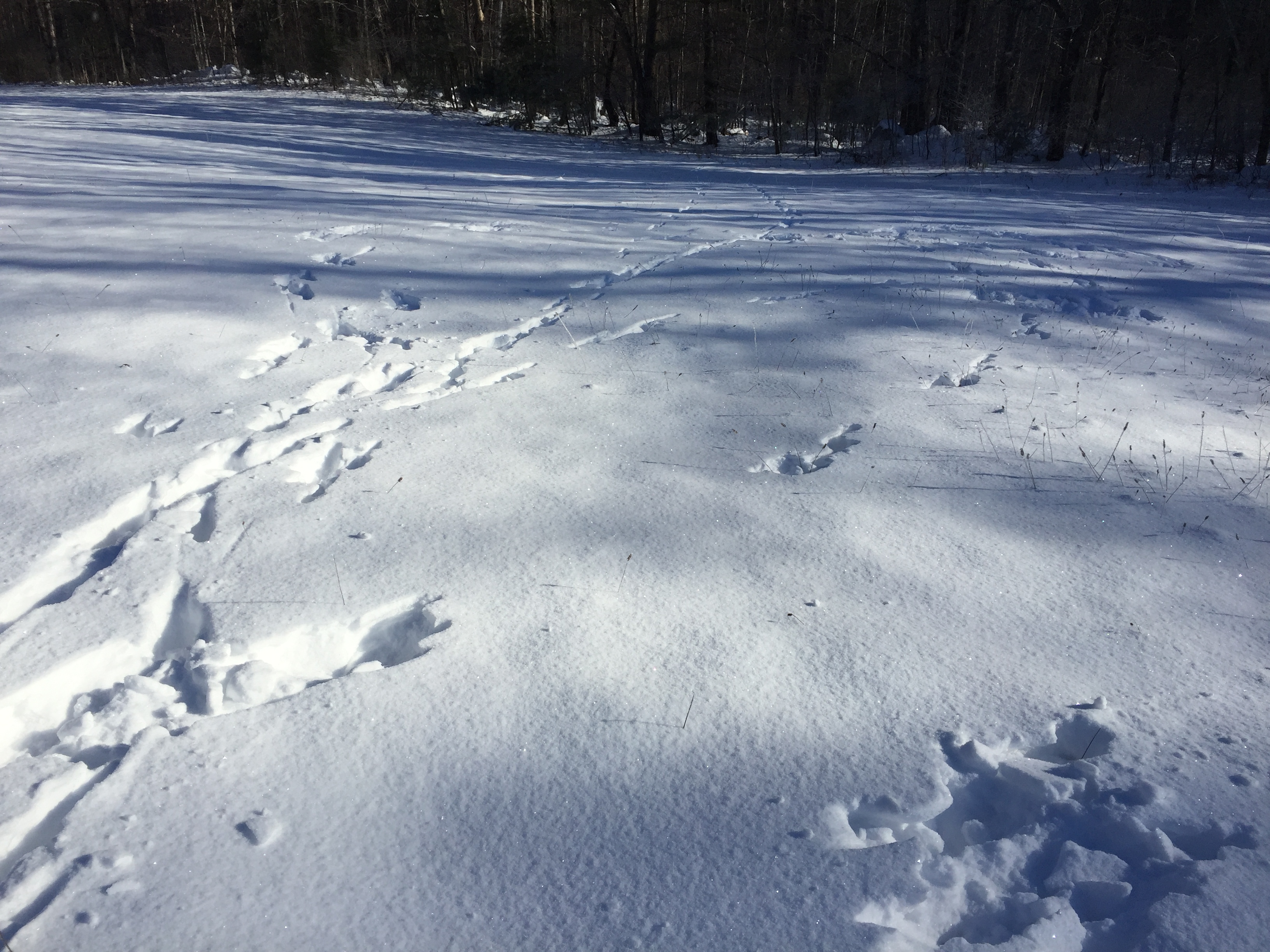 It’s the weekend again. I wake up with the sun shining in the bedroom window through the trees. I dress and head outside. What have my wild neighbors been up to? The coyote seem to love tracking through the field between the forest and the wetland. And this morning I found tracks everywhere. I did not find evidence of a kill, not even a mouse. It was like they were playing. Trotting then jumping into the newly fallen snow. An imprint of a smaller body. I am sure there are yearlings in this pack. There I said it. Yes, a pack. Coyotes can be solitary creatures but over the years, more and more I notice family groups. One or two sets of tracks that fan out and return together. Coyotes can do something in their step called direct registration. That means their back feet fall into their front feet tracks. It can make them appear two-legged. And it can make a few coyote appear to be one – until you see the tracks fan out and you realize you were following a family. Deer can do this too. But the coyote were not following deer that night into the field. They are very familiar with this field. But what drew them out last night to howl to the dark sky? And despite the freezing temperatures, what inspired the yearlings to play and not conserve energy? Two sets of tracks came out of the forest but at least five explored the field, only to congregate again as they left the field to the southeast. I tracked one set of prints back into the forest only to observe them fanning out again. So many options. Where were they going? Back to a den? Where did they sleep during the day? Tracking my wild neighbors answered some questions, only to give me more. Sometimes out here in the field