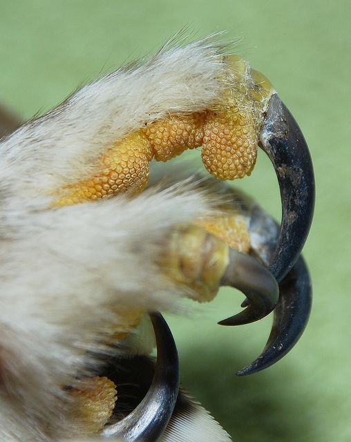 Nocturnal raptors are in the order Strigiformes. Characteristics include: flattened faces forming facial discs; large forward-facing eyes; soundless flight, and usually feathered feet with a reversible outer toe. Some species have “ear” tufts. The Commonwealth supports 6 resident owls: Great Horned, Barred, Barn, Long-eared, Screech, and Saw-whet. The Saw-whet (Aegolius acadicus) is our smallest owl, measuring just 1 ½’ tall with a 1 3/4’ wingspan, and the Great Horned (Bubo virginianus) is our largest with 4-5’ wingspan, standing about 2’ tall.
