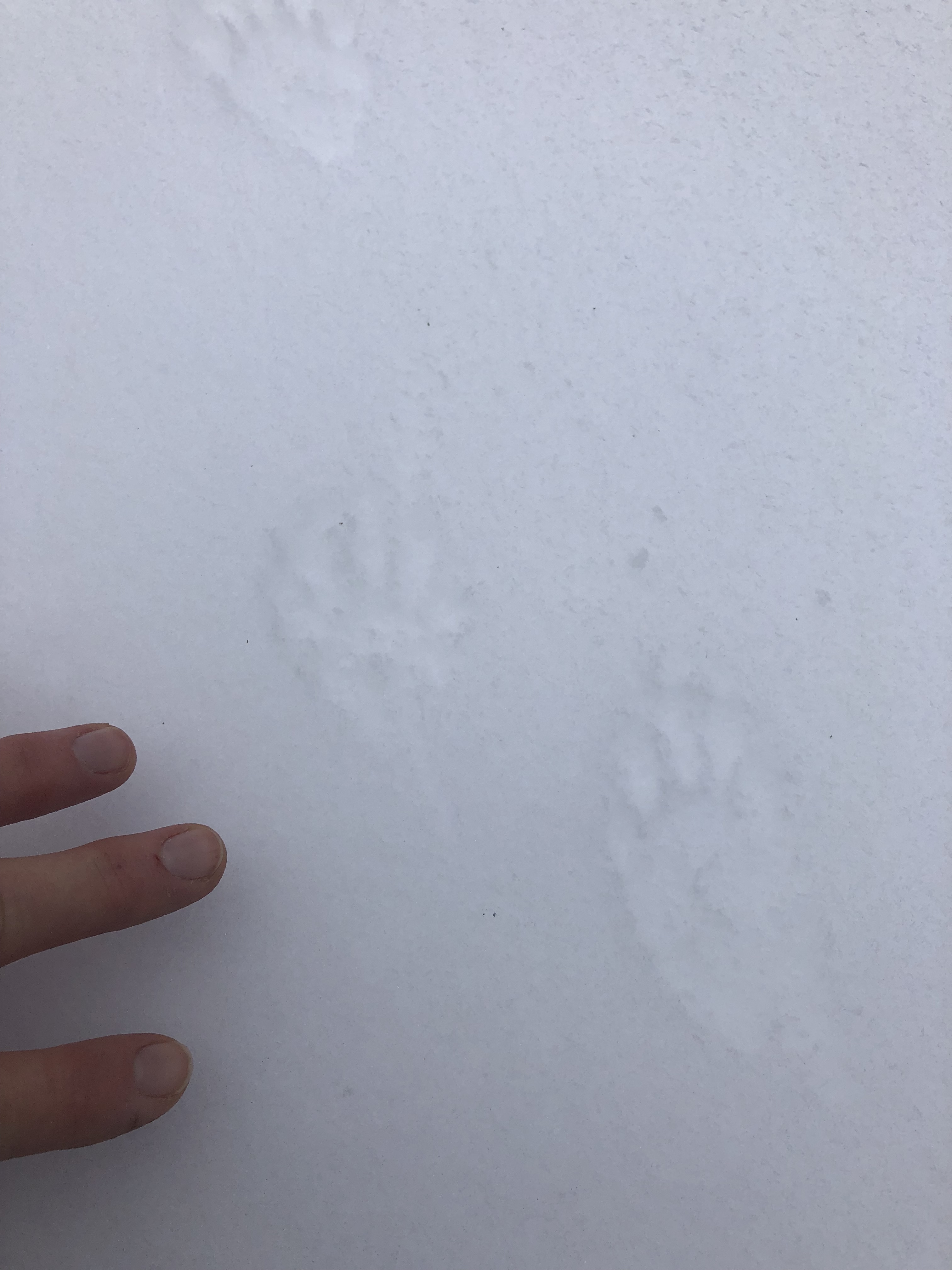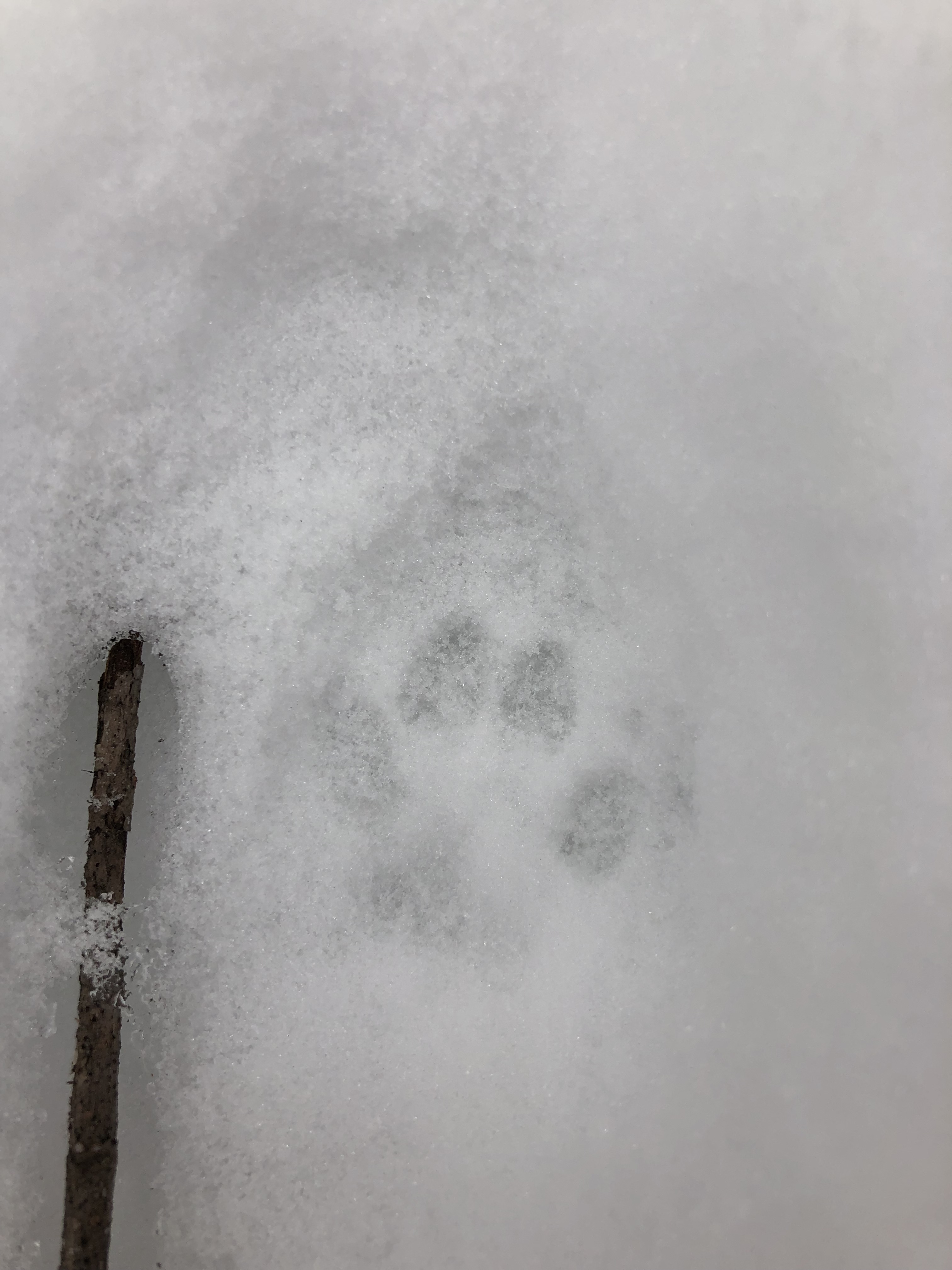 The first Saturday in March has proven to be perfect tracking weather. The snow is firm enough so that lighter animals (i.e., non-humans) are not punching through too deeply, but just enough to leave clear prints.