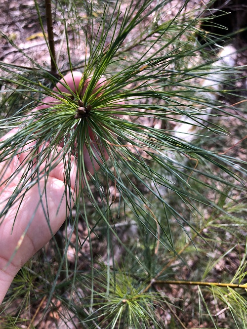 Eastern White Pine, Pinus strobus. Needles are in bundles of 5.