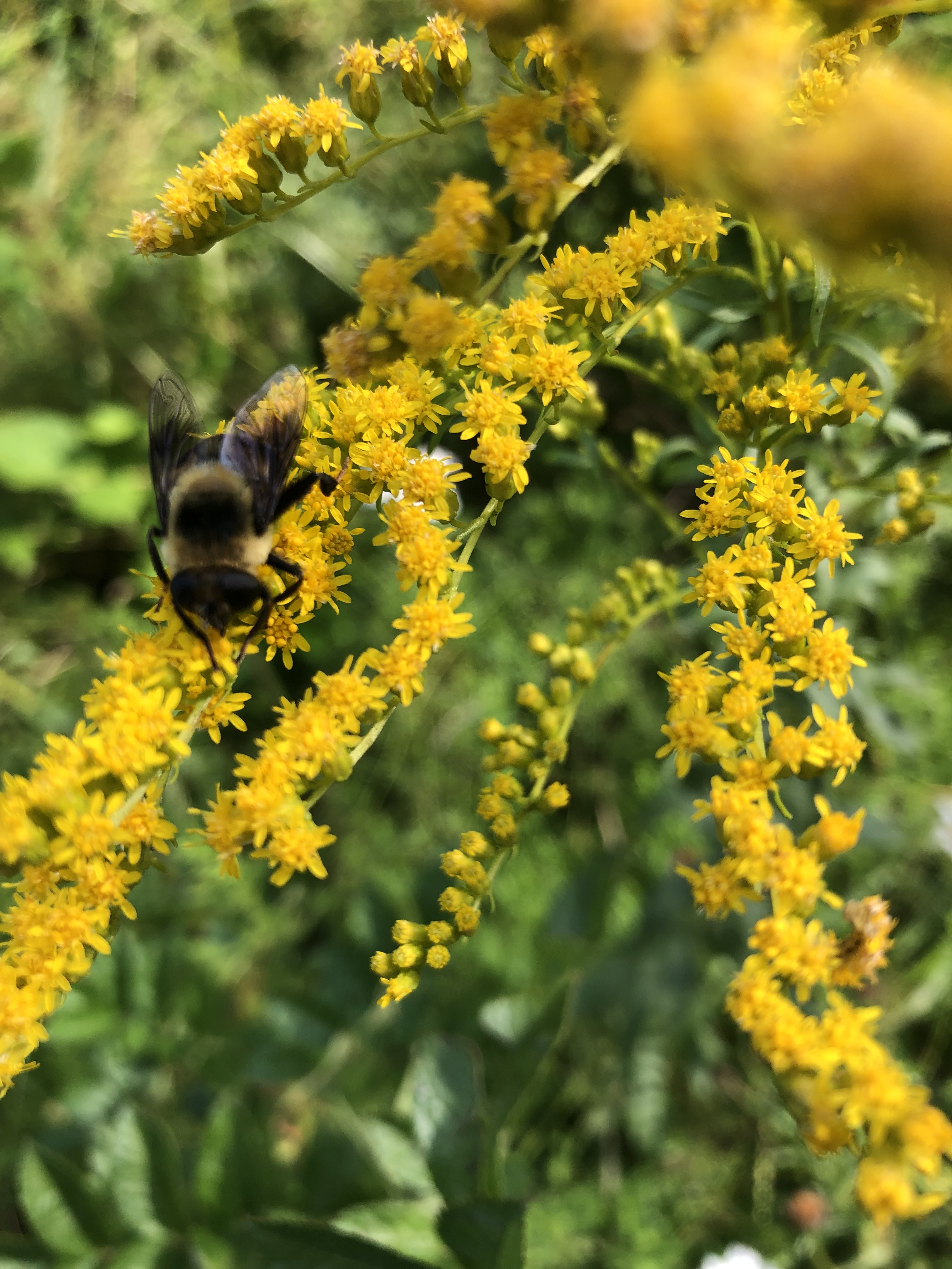 Goldenrod, Solidago spp., also in Asteraceae, also love my yard. There are so many varieties of goldenrod, but the attributes this family share in common are their yellow flower heads which tend to appear as a long row of draping tiny bright yellow flowers, and their thin tapering long dark green leaves. Goldenrod, growing about 3’ tall, blooms in the late summer and fall and can be used medicinally. Leaves and flowers can be steeped to make an anti-inflammatory, anti-oxidant, and anti-fungal tea. And as a treatment for ragweed allergies. And for a long time that is all I knew. And then I read they are edible. What? They are all over the place and one can eat the flowers and leaves? I had to sample. Raw flowers are bitter with a slight aromatic taste, reminiscent of ox-eye daisy, that lingers in the mouth. Using the festive flowers as a garnish would liven up a fall salad. But do not overdo it if you are not used to eating bitters. Young leaves can be cooked until wilted via sautéing or steaming or blanched and put in the freezer for later use in soups and stir-fries.