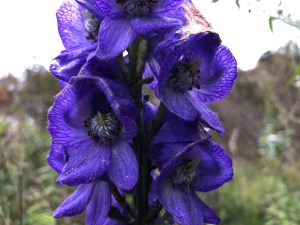 All parts of monkshood are poisonous, hence why it has so many other common names ending in “bane”, meaning a deadly poison. And its Latin name Aconitum may stem from the Greek akon meaning dart – which is what would be tipped with the juices of this pretty poison. Aconitine is a heart and nerve toxin. A dart tipped with aconite or a tincture in ones’ drink could bring predators and enemies down with agonizing accuracy. And though just touching any part of the plant may not cause any adverse reactions, it is best to handle this posy with gloves because direct contact can cause abnormal sensations of prickling or itching if the cells are crushed. And if you accidently ingest this queen of poisons be sure you have your will in place because there is not much medically that can be done even if you get to a hospital in time. Activated charcoal may be useful. So why have this plant in your yard? Well, if the apocalypse comes you’ve got a source of protection, right? As long as you’ve got good aim. And monkshood is pretty. We have all matter of flora in our yards that we cannot eat but we keep around because we like them. Heck, some people actually keep grass around and you can’t eat grass; all you can do is mow it and mow it some more and wait for winter when you won’t have to mow it anymore.