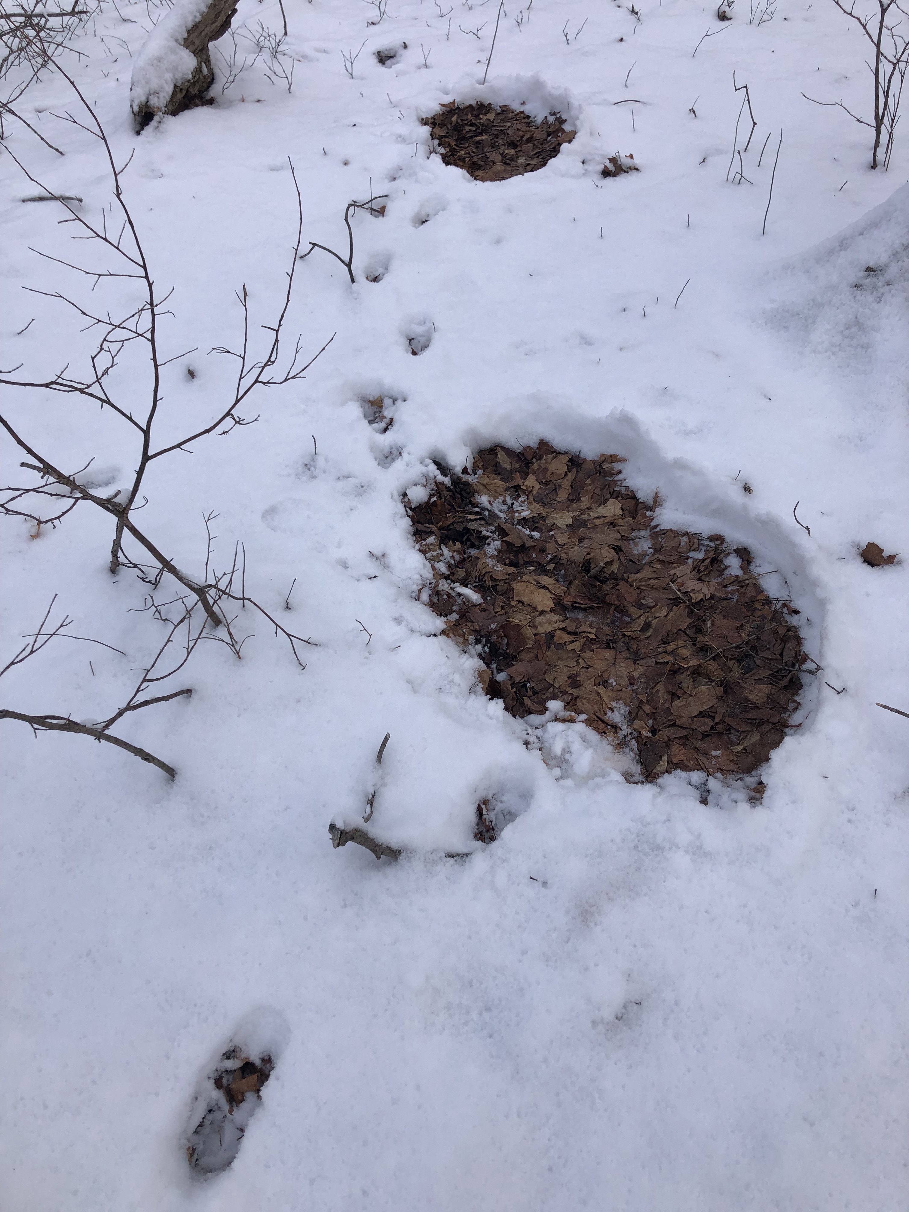 Going back to our White-tailed Deer neighbors, one thought as to why they shed their antlers after the rut, is that, not only are they no longer competing for dominance or females, but –  “Baby, it’s cold outside!” – and keeping together as a herd is safer. More eyes and ears on the lookout for predators. When I find deer-beds in the woods, the imprints don’t show that they cuddle together but still keep in close proximity.